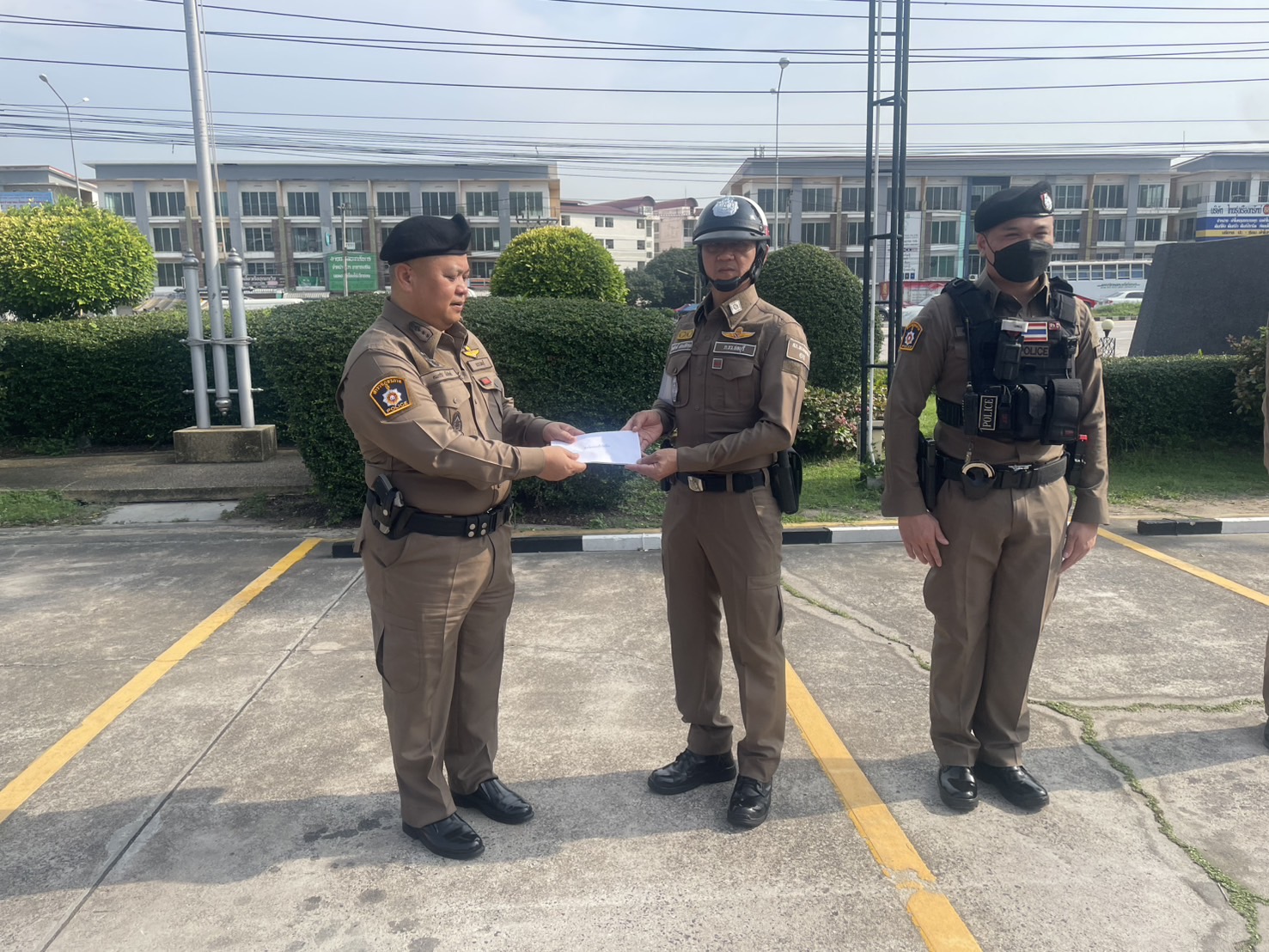 2.ได้มอบรางวัลให้แก่ข้าราชการตำรวจ ในการตรวจทรงผม แต่งกายถูกต้องตามระเบียบตำรวจ จำนวน 2 นาย