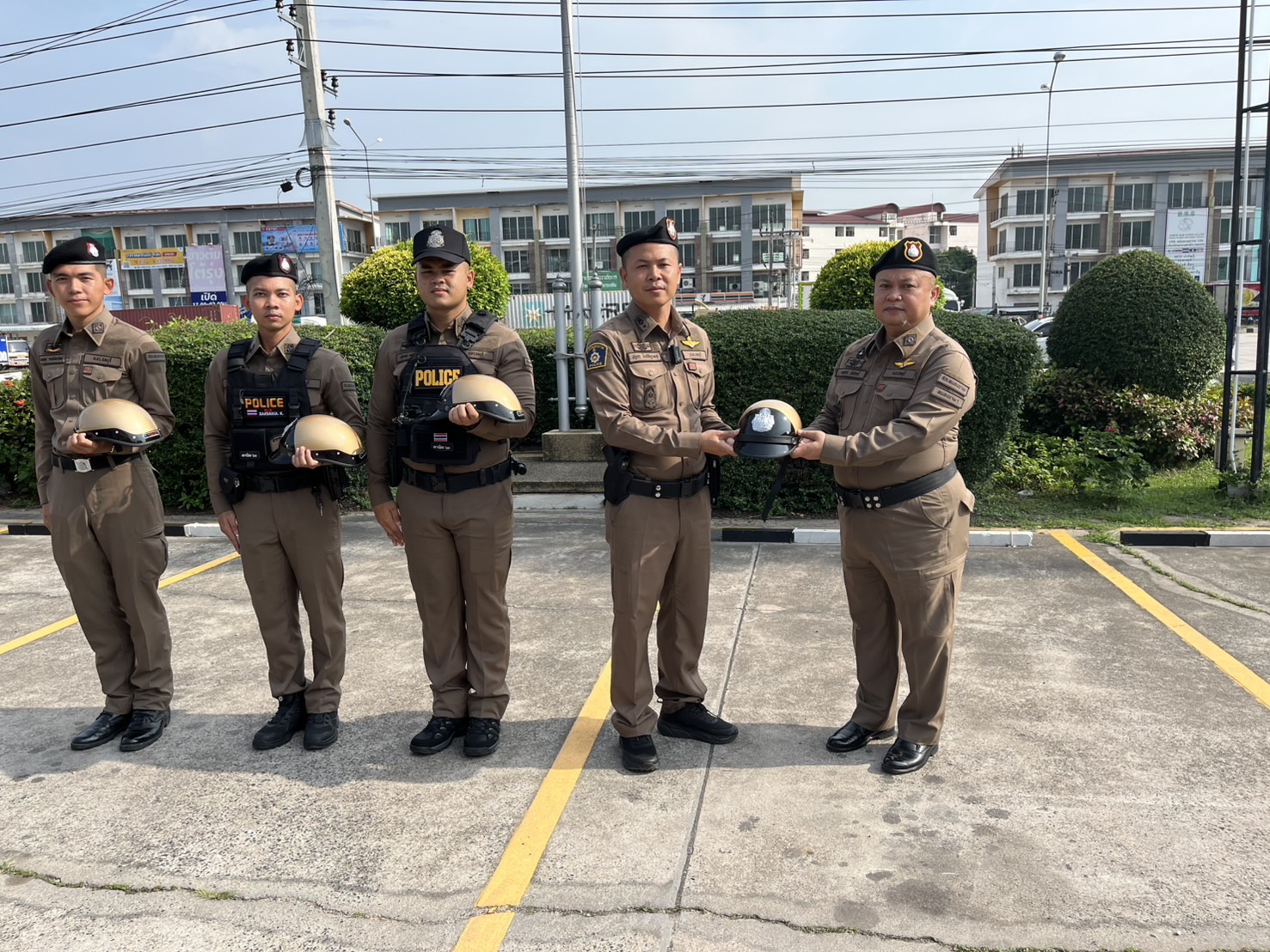 3.มอบหมวกสำหรับใช้ในการปฏิบัติหน้าที่ ให้กับนายสิบตำรวจที่มาดำรงตำแหน่งใหม่ จำนวน 4 นาย